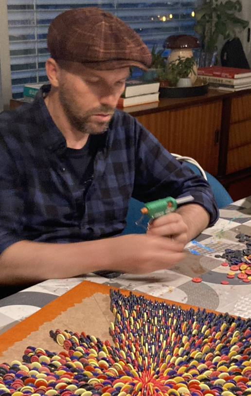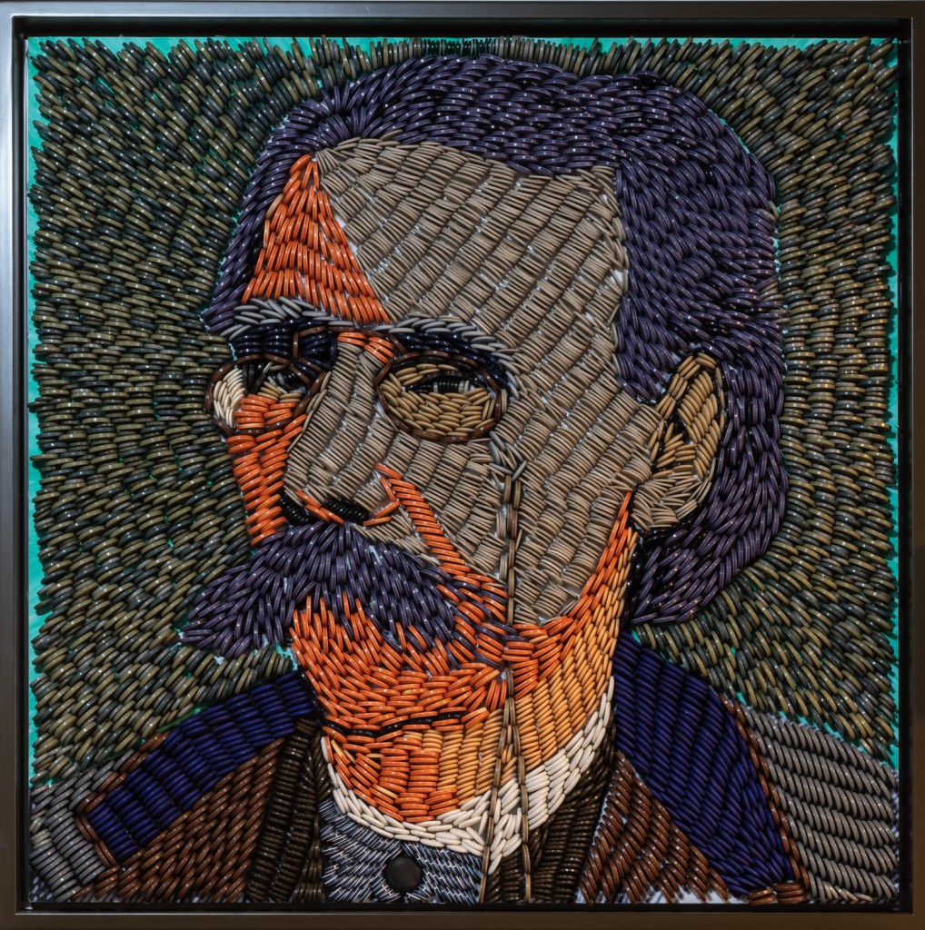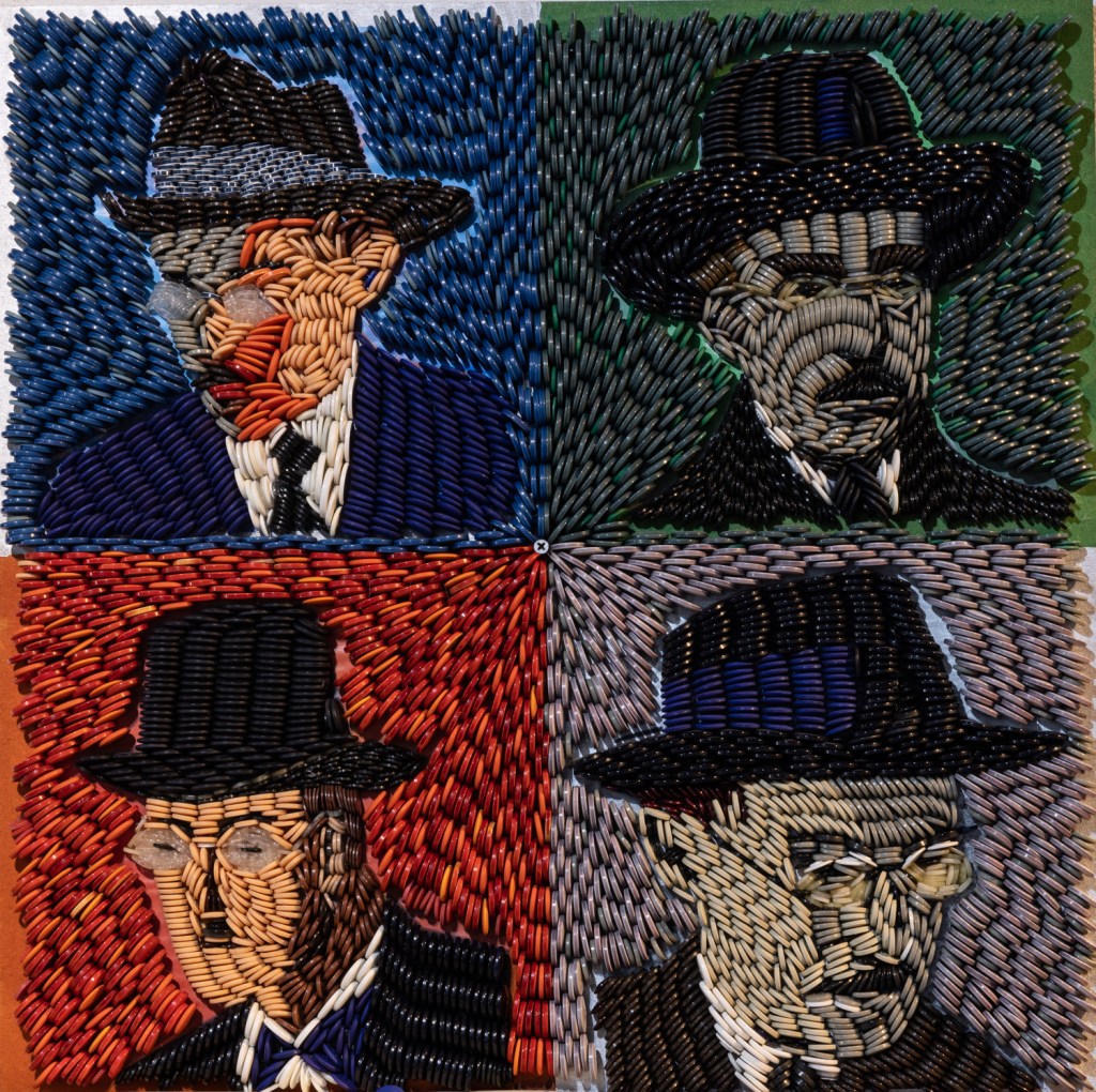 São retratos que, ao invés das tintas, ganham forma, cor e textura com botões, objetos que desde cedo captaram a atenção, uma vez que sempre estiveram presentes em abundância na casa da avó Camila, na sua aldeia transmontana de Santa Comba da Vilariça.